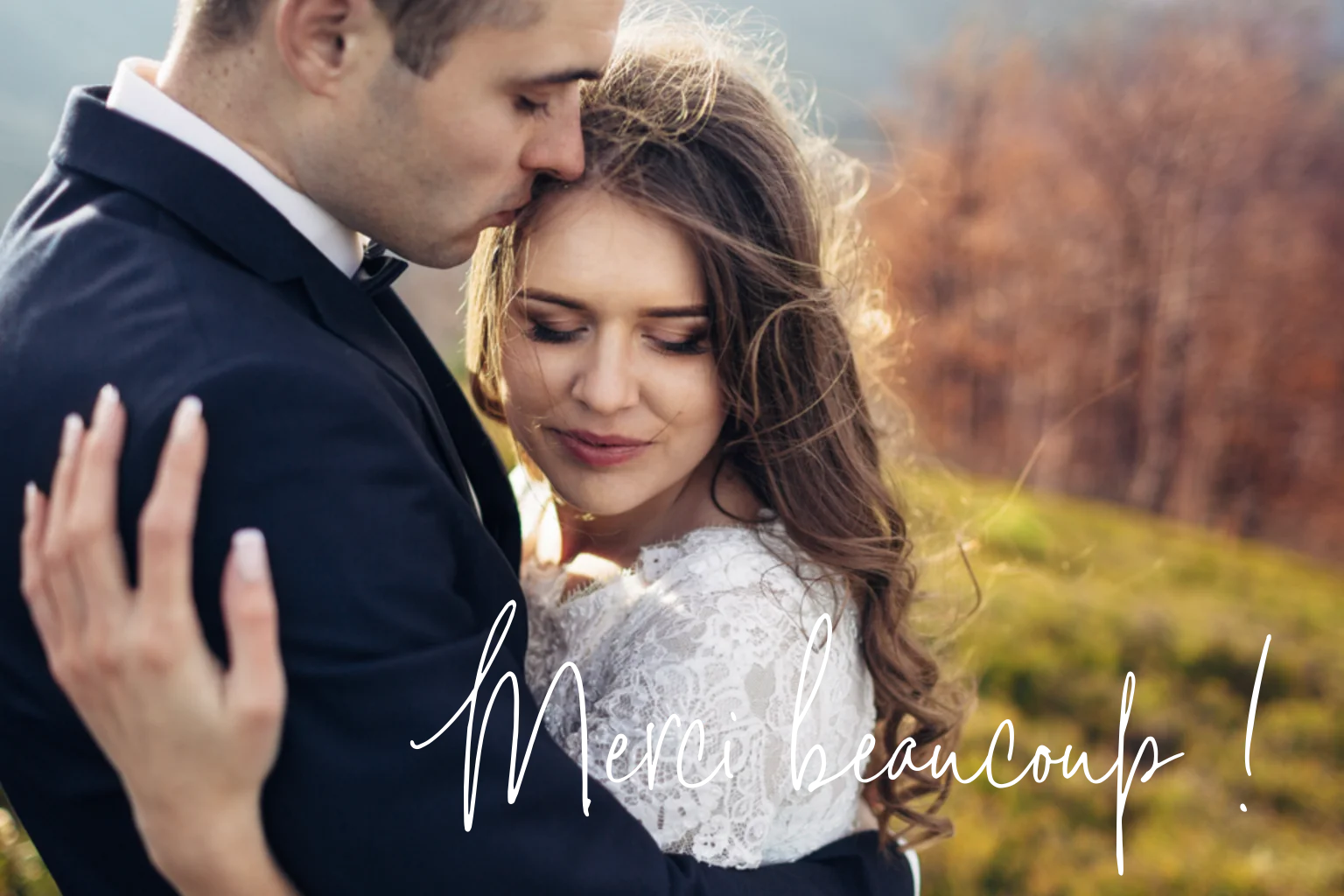 Carte de remerciement élégante à double face pour mariage avec typographie et cœur en feuille d'or classique.