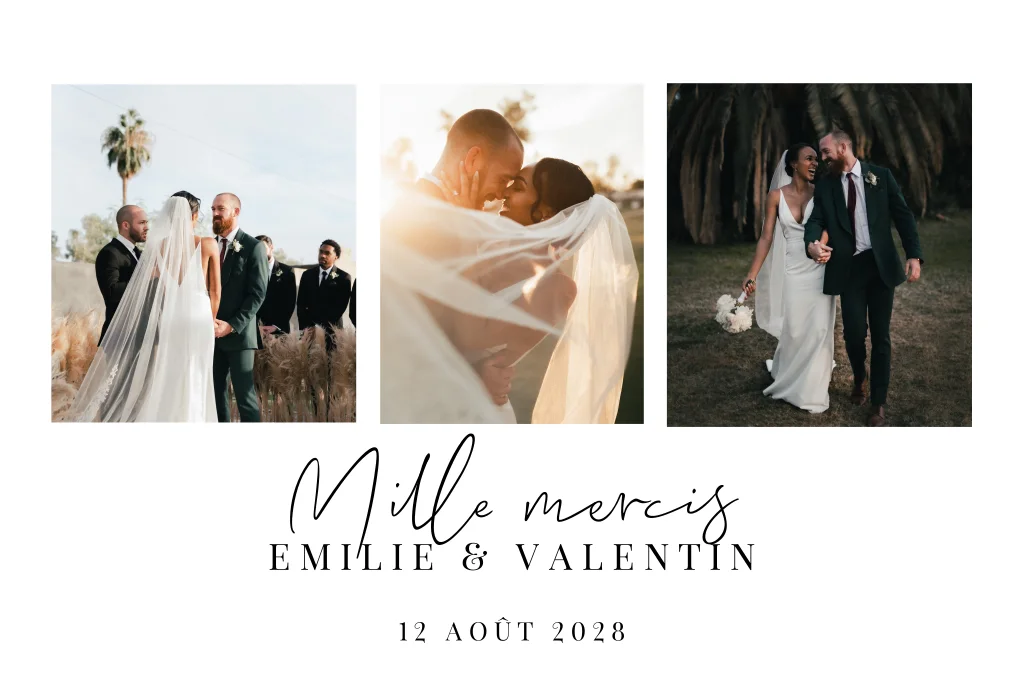 Magnet de remerciement mariage classique avec trois photos