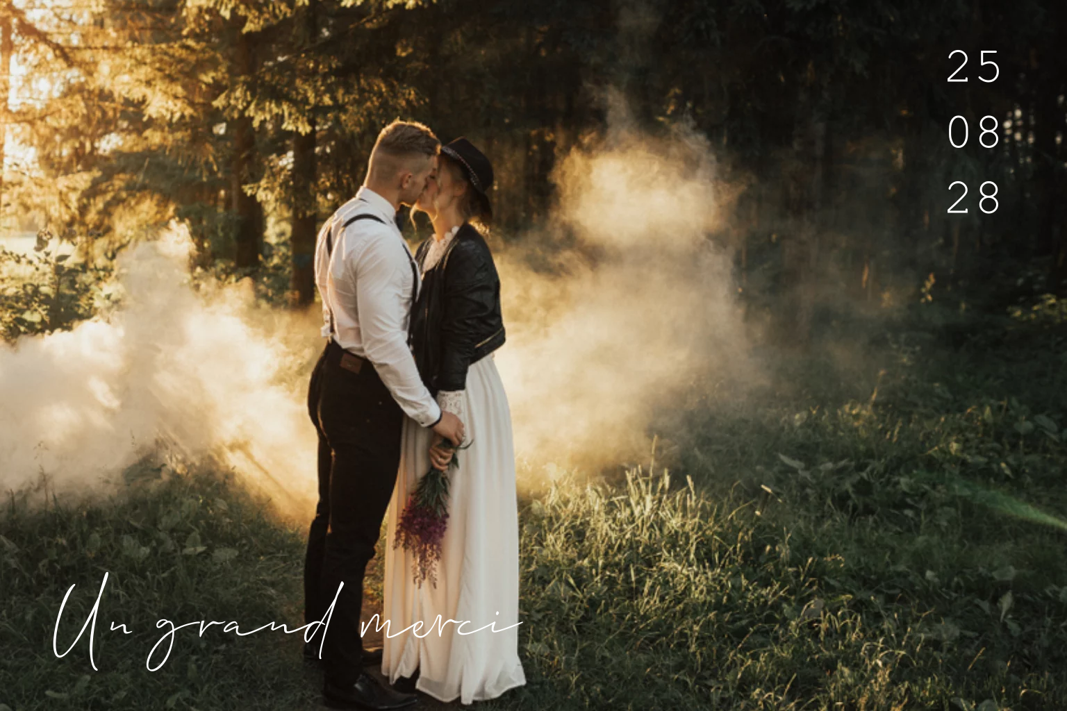 Carte de remerciement élégante avec date et merci en dorure et photo