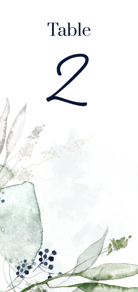 Marque table avec des branches d'aquarelle en bleu et vert.