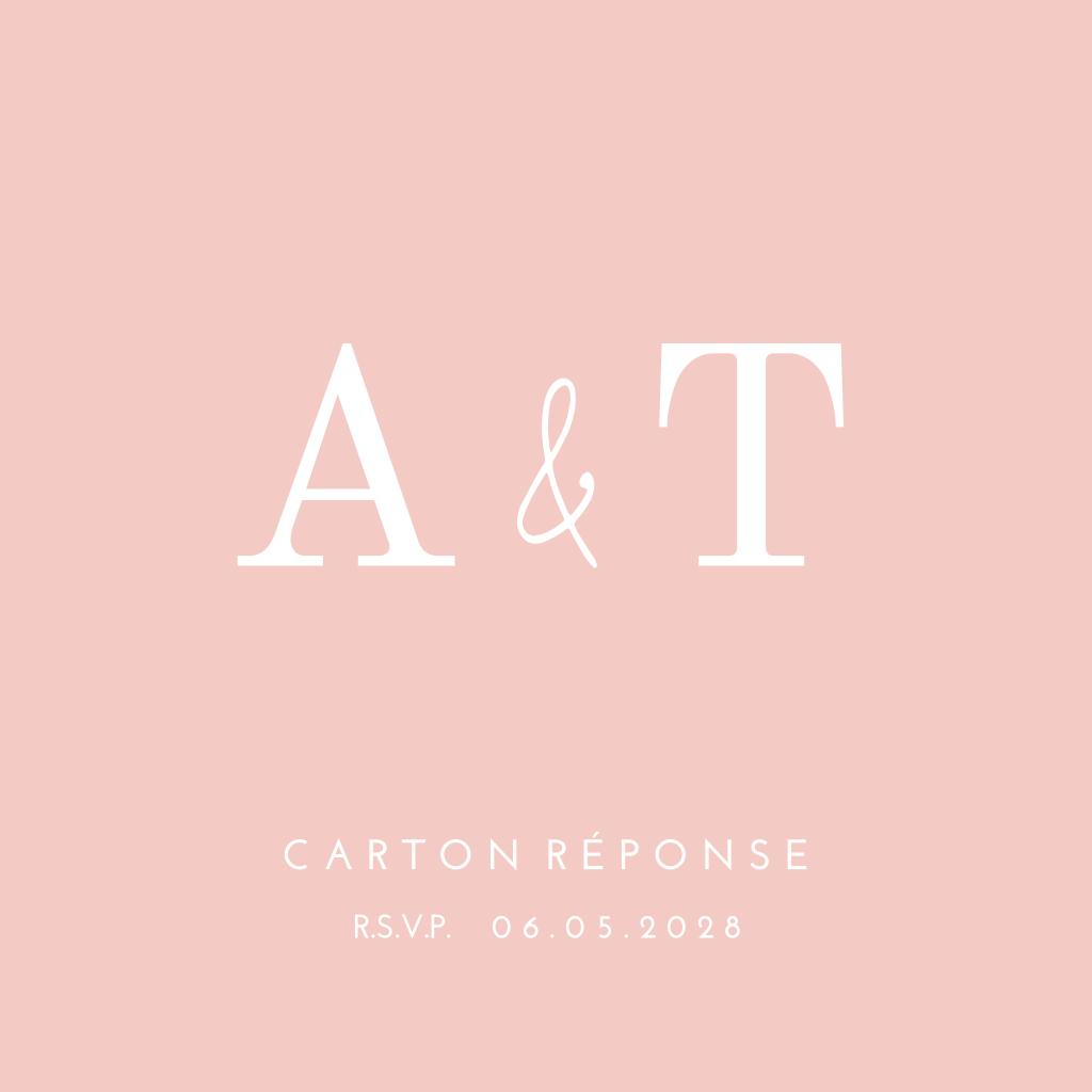 Carton réponse avec des détails en or rosé et les initiales des mariés