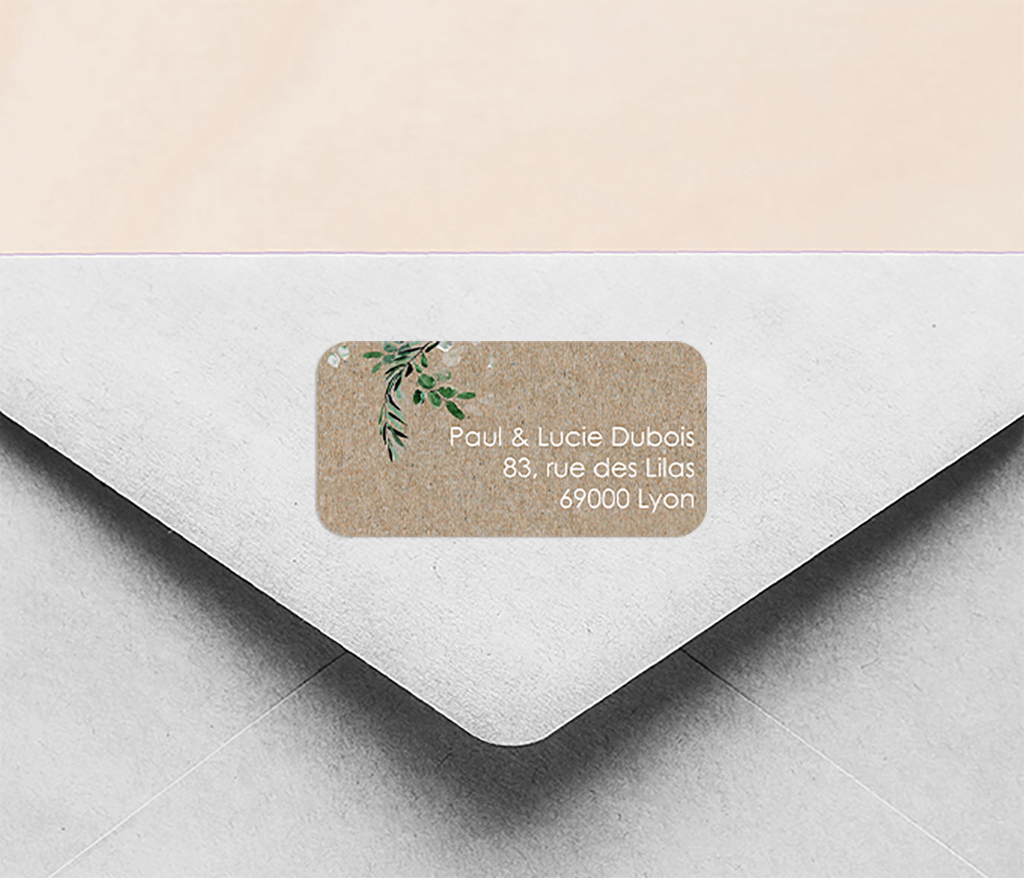 Étiquette d'expéditeur aspect kraft avec feuilles - 14 pièces