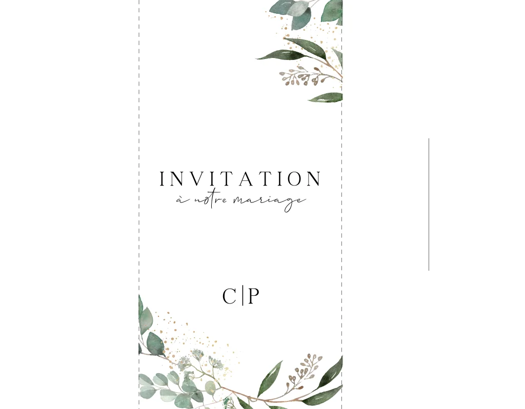 Étui pour faire-part mariage au format long avec feuillage