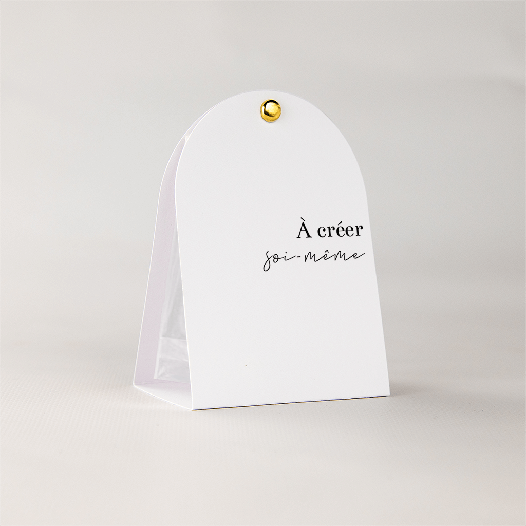 • Les deux faces peuvent être fermées à l'aide d'une attache parisienne et la boîte à dragées peut être complétée d'un sachet transparent pour les dragées.