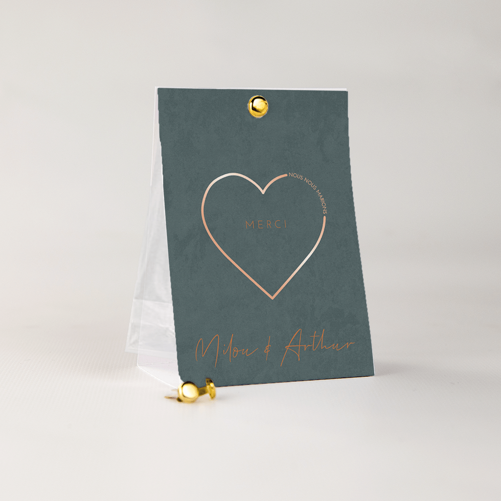 • Les deux faces peuvent être fermées à l'aide d'une attache parisienne et la boîte à dragées peut être complétée d'un sachet transparent pour les dragées.