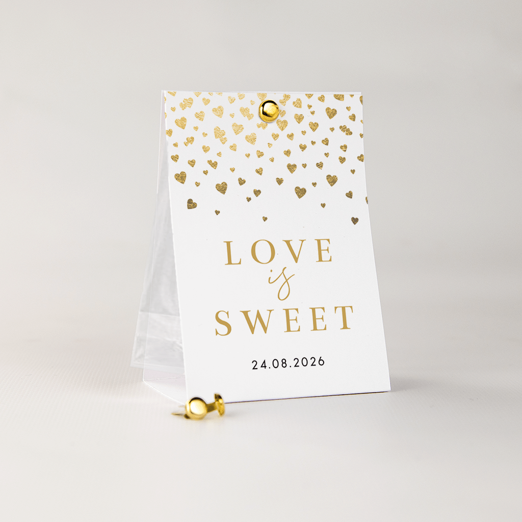 • Les deux faces peuvent être fermées à l'aide d'une attache parisienne et la boîte à dragées peut être complétée d'un sachet transparent pour les dragées.
