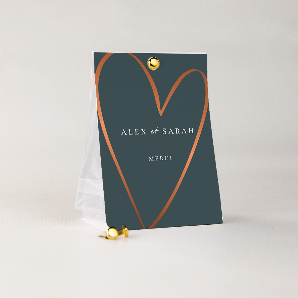 • Les deux faces peuvent être fermées à l'aide d'une attache parisienne et la boîte à dragées peut être complétée d'un sachet transparent pour les dragées.