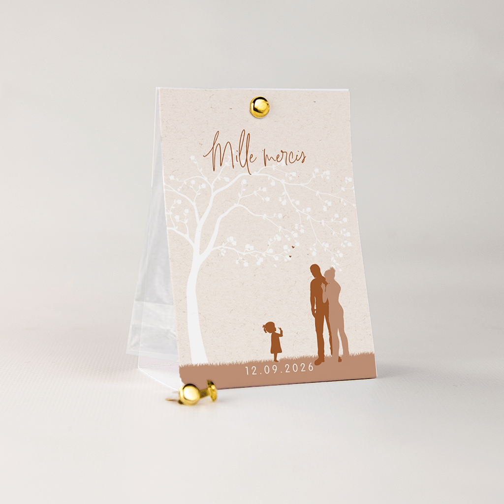 Boîte à dragées mariage avec silhouettes d'une famille et arbre
