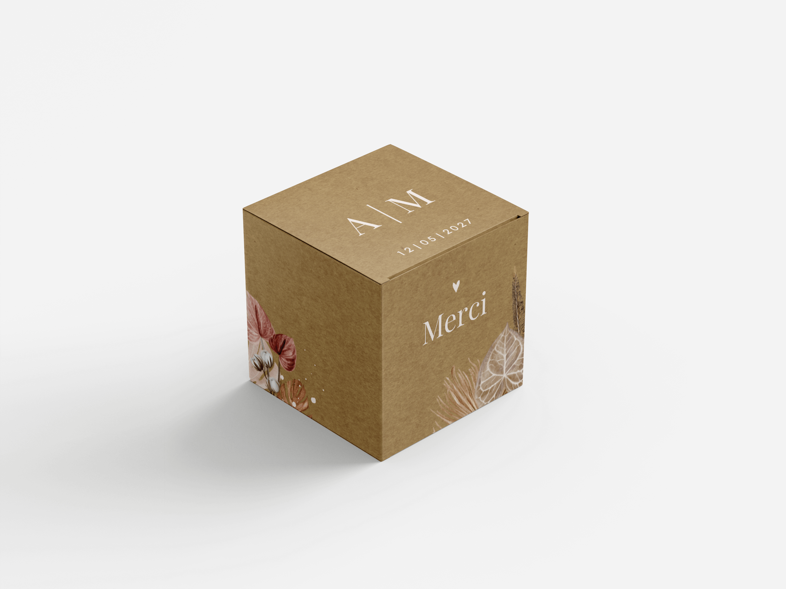 La boîte, avec des dimensions de 5 cm de chaque côté, est livrée dépliée. Le délai de livraison est de 4 jours ouvrables.