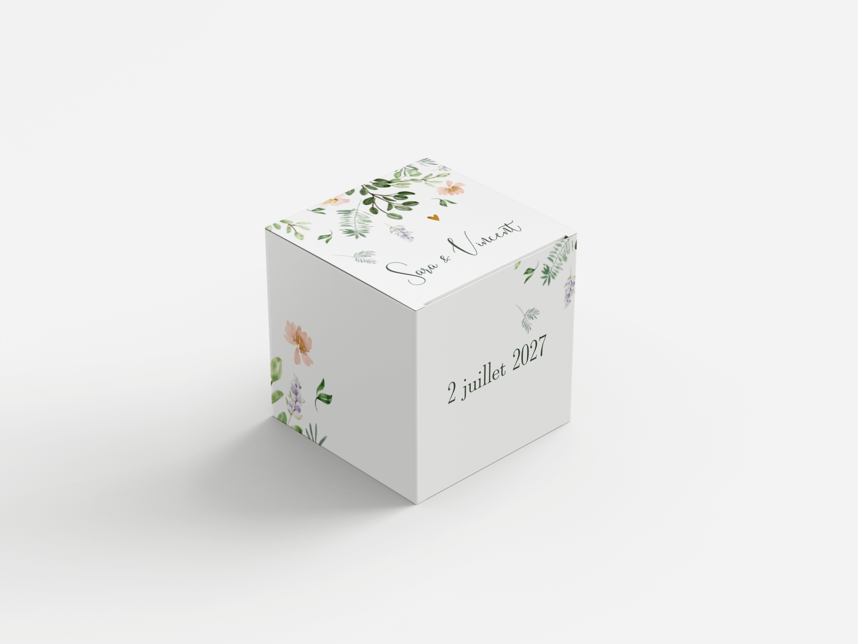 La boîte, avec des dimensions de 5 cm de chaque côté, est livrée dépliée. Le délai de livraison est de 4 jours ouvrables.