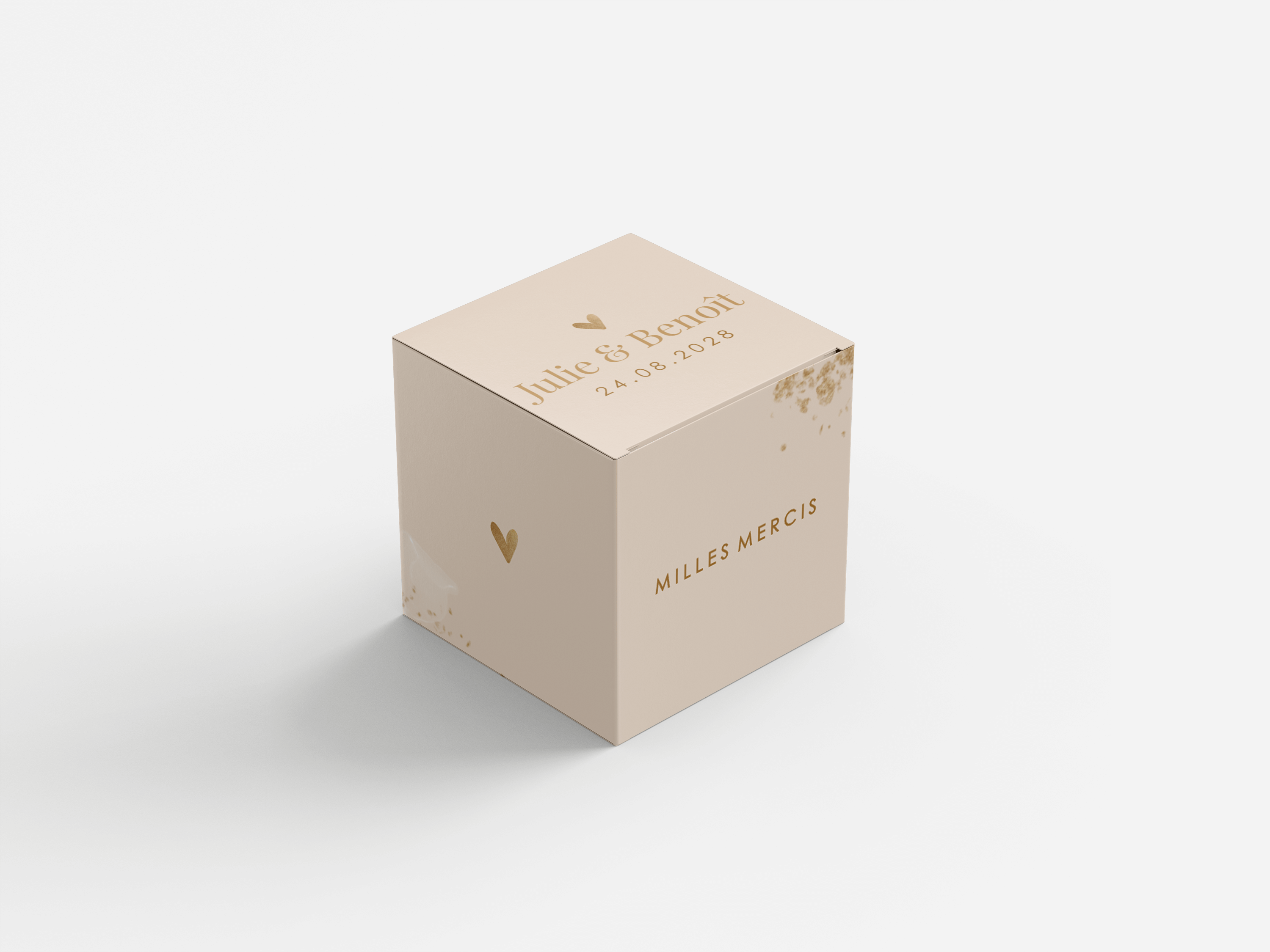 La boîte, avec des dimensions de 5 cm de chaque côté, est livrée dépliée. Le délai de livraison est de 4 jours ouvrables.