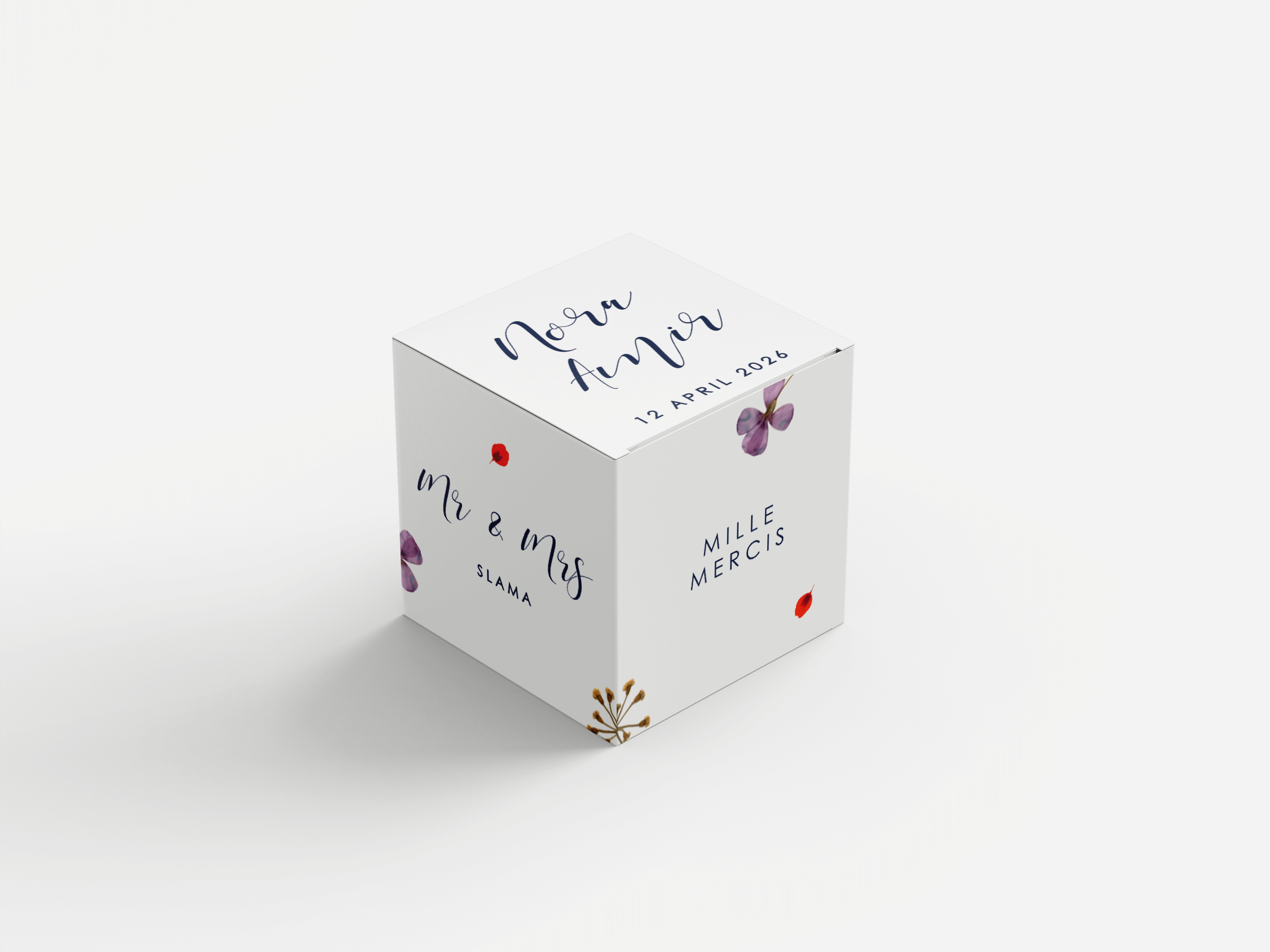 La boîte, avec des dimensions de 5 cm de chaque côté, est livrée dépliée. Le délai de livraison est de 4 jours ouvrables.