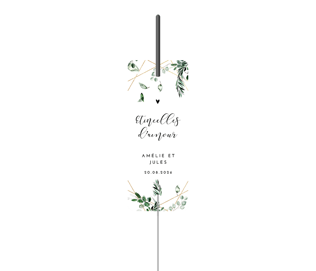 Étiquette feux de Bengale avec eucalyptus et lignes dorées - 8 pièces