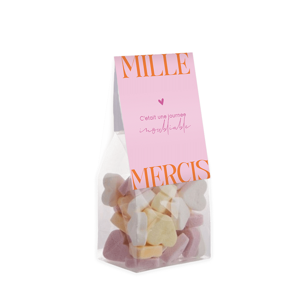 Étiquette de sachet à dragées en color-blocking rose et orange