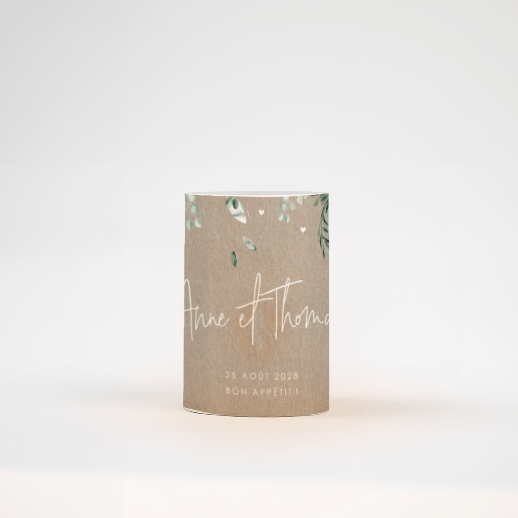 Photophore avec feuilles d'eucalyptus sur fond d'aspect kraft