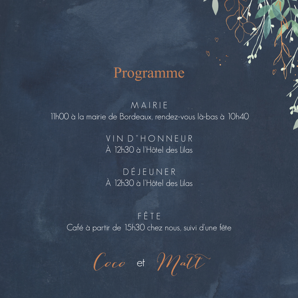 Note: Une feuille d'insertion est le complément parfait pour vos invitations de mariage. Sur ces fines feuilles, vous avez la possibilité d'ajouter des informations supplémentaires pour les invités. Nos feuilles d'insertion sont disponibles dans les types de papier suivants: papier transparent (200 g/m2), sans bois (papier blanc sans bois 170 g/m²) et papier Biotop (papier blanc cassé 195 g/m2). Le papier Biotop est légèrement jaunâtre, le papier sans bois est blanc. L'avantage du papier Biotop et du papier sans bois est que vous pouvez imprimer des deux côtés. Le papier transparent peut être imprimé d'un seul côté et a un aspect laiteux. Si vous voyez l'insert de votre choix mais que vous souhaitez l'avoir sur un autre type de papier, veuillez nous contacter et nous le convertirons. Notez que l'impression en feuille est uniquement possible sur du papier Biotop. Choisissez un insert de la même taille ou légèrement plus petit que votre carte de mariage.