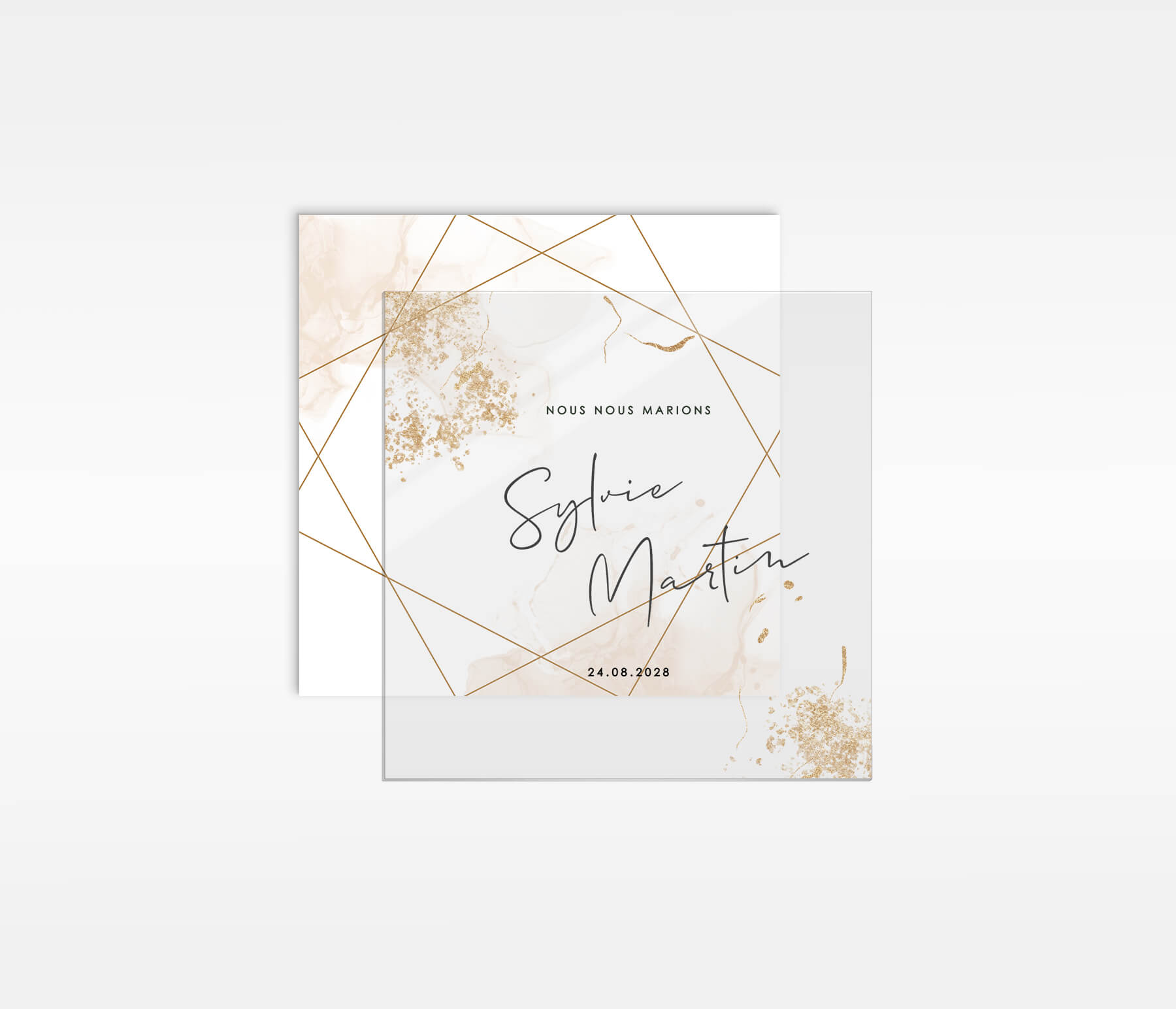 Faire-part sur plexiglas avec dorures | feuillet en option
