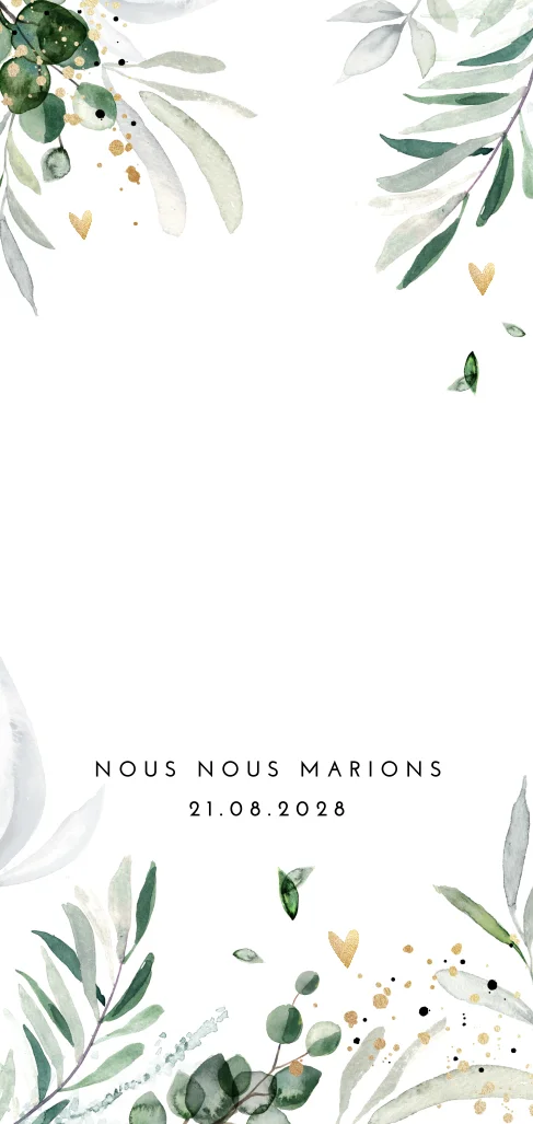 Faire-part avec feuilles, cœurs