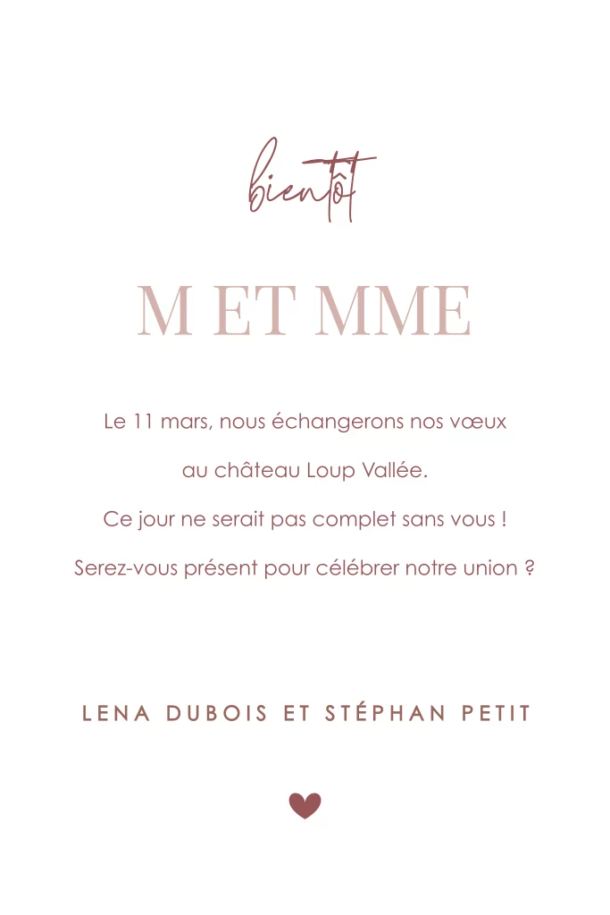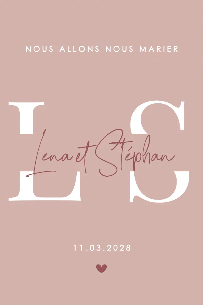 Faire-part moderne avec belles polices d'écriture sur ton vieux rose