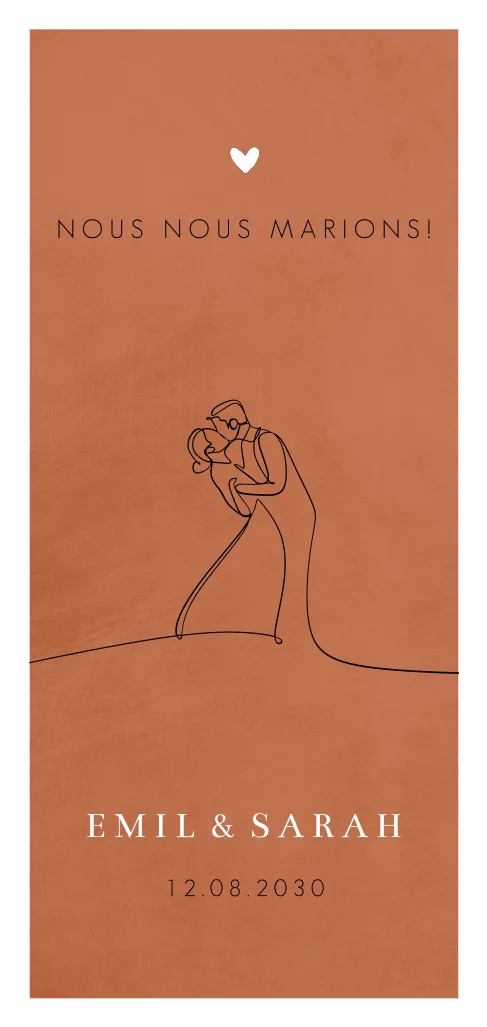 Faire-part de mariage allongée en terre cuite avec dessin en traits