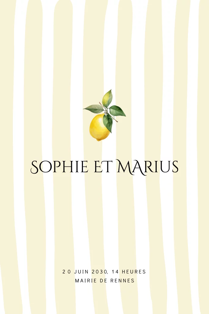Faire-part de mariage avec des citrons et traits verts verticaux