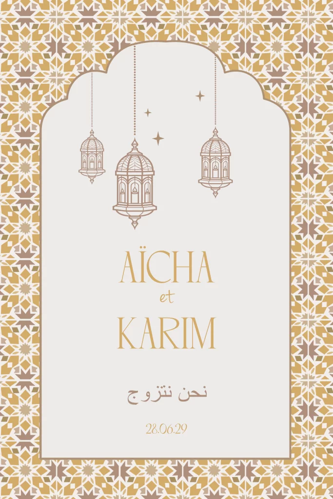 Faire-part de mariage avec design moyen-oriental et des lanternes