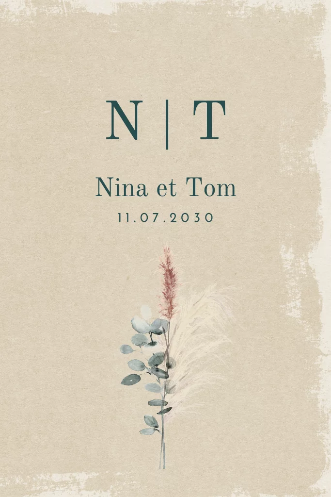 Faire-part de mariage vintage avec des fleurs séchées