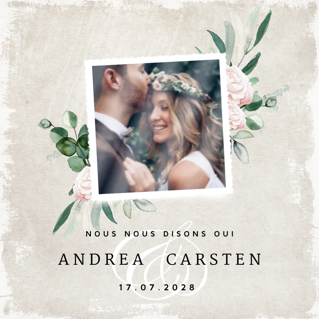 Ce faire-part de mariage d’une douceur intemporelle est idéal pour un mariage vintage ou bohème. Il appartient au set Fleurs d’antan.