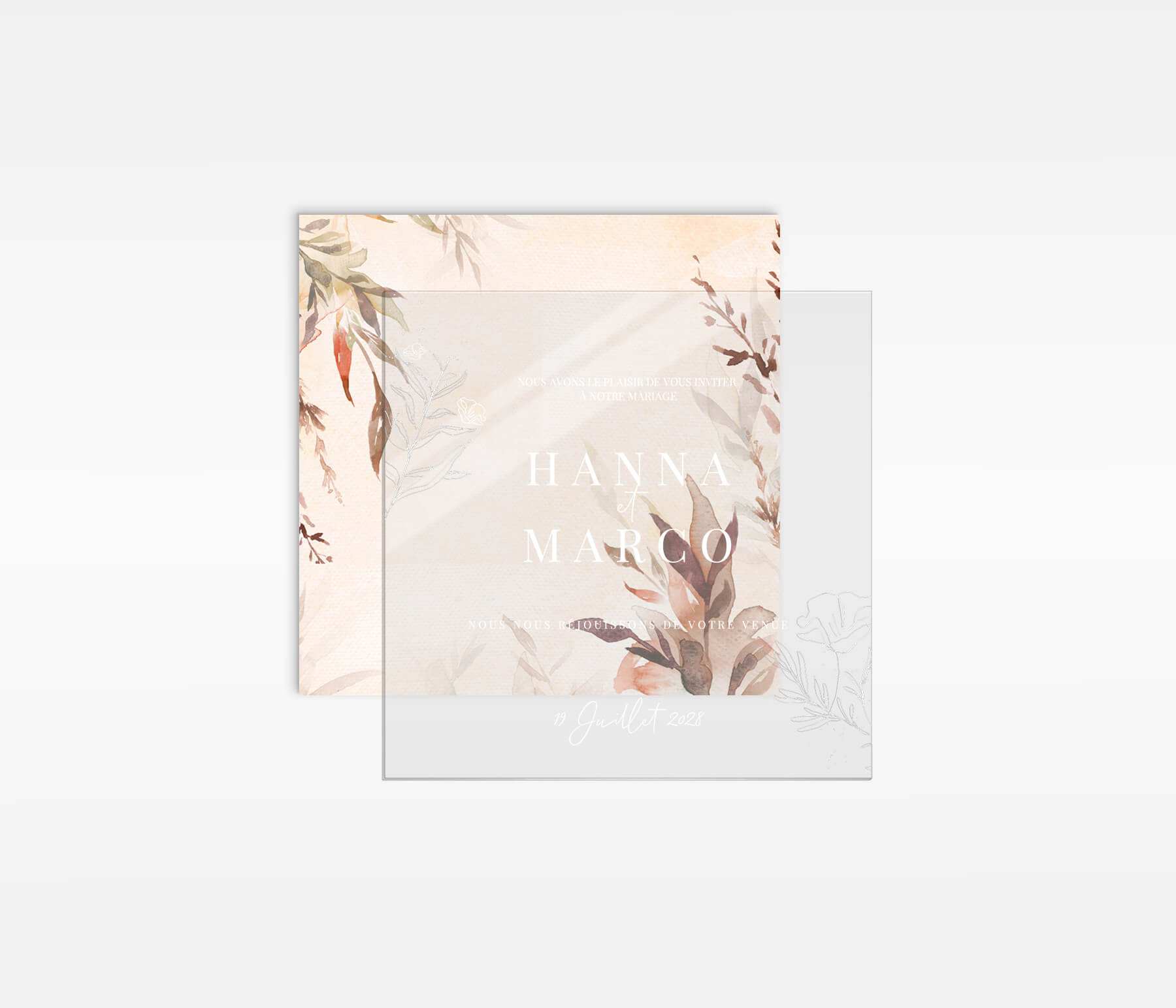 Faire-part original sur plexiglas | feuillet en option