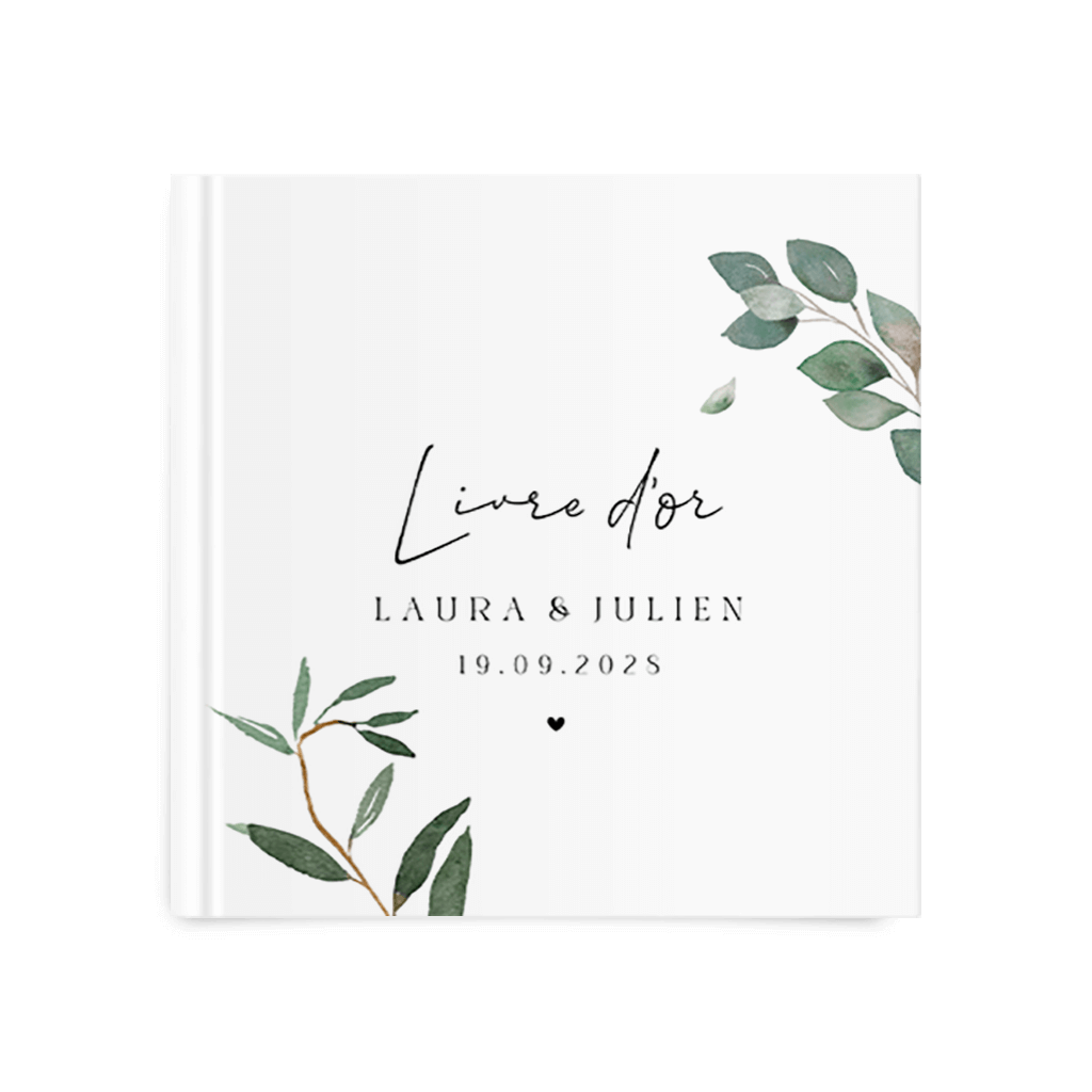 • La couverture du livre d’or (recto & verso) entièrement personnalisable