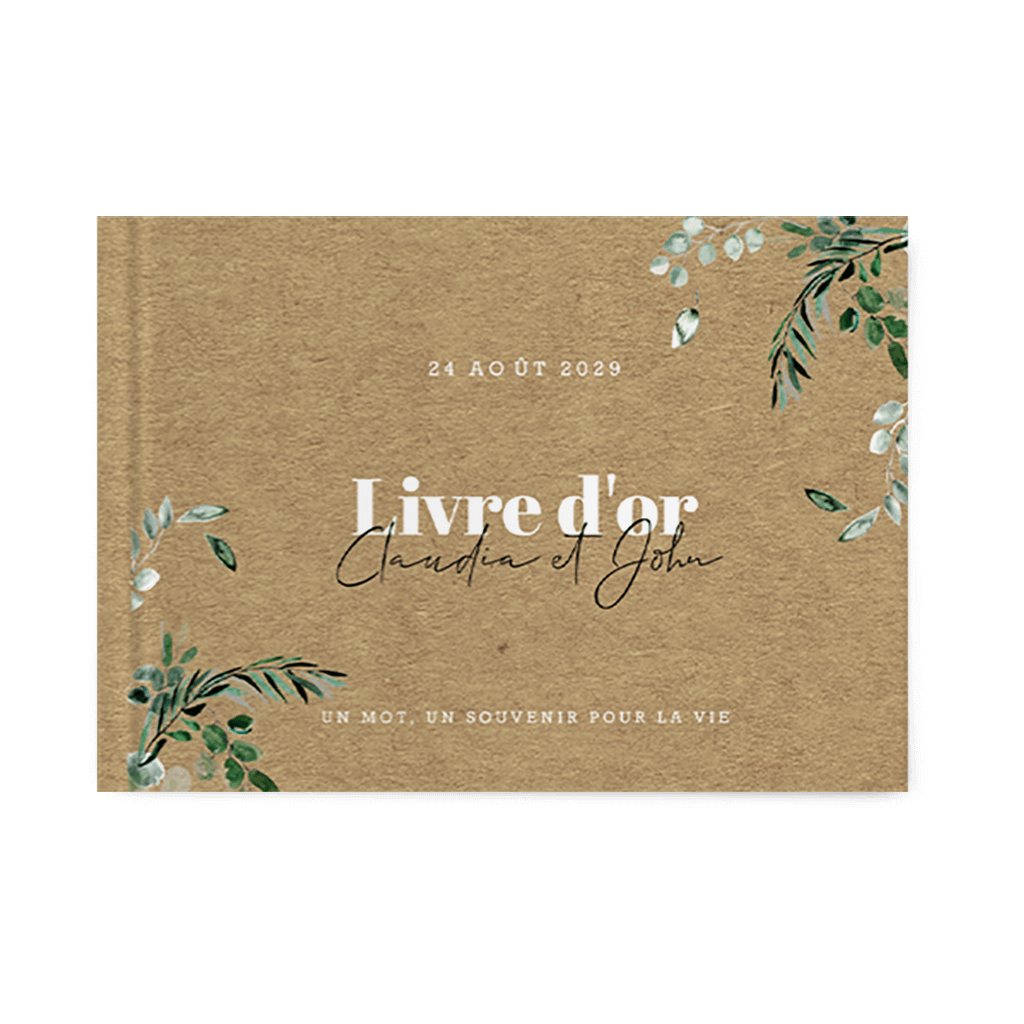 • La couverture du livre d’or (recto & verso) entièrement personnalisable