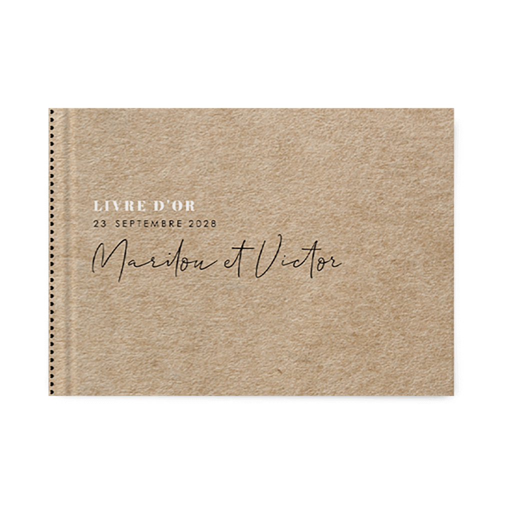 Livre d'or d'aspect kraft avec petits cœurs sur le dos