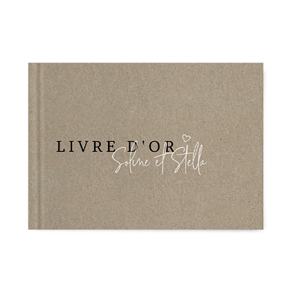 Livre d'or d'aspect kraft simple avec écriture blanche et noire