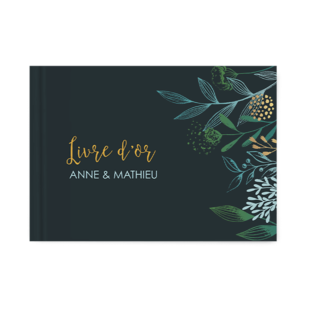 Livre d'or avec dessin botanique sur fond foncé