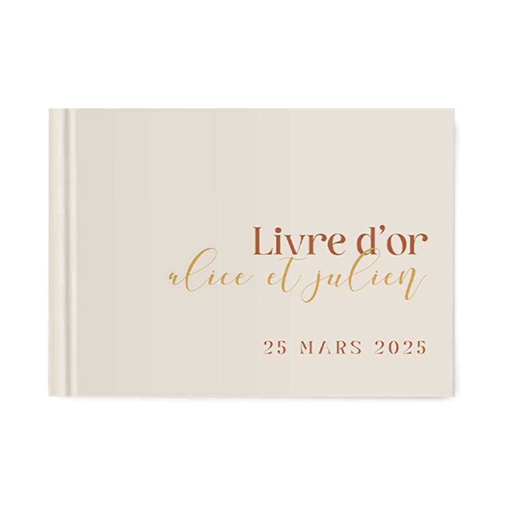 • La couverture du livre d’or (recto & verso) entièrement personnalisable