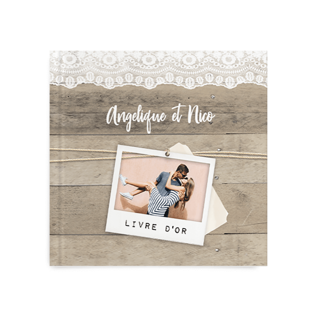 Livre d'or avec bordure en dentelle et photo polaroïd