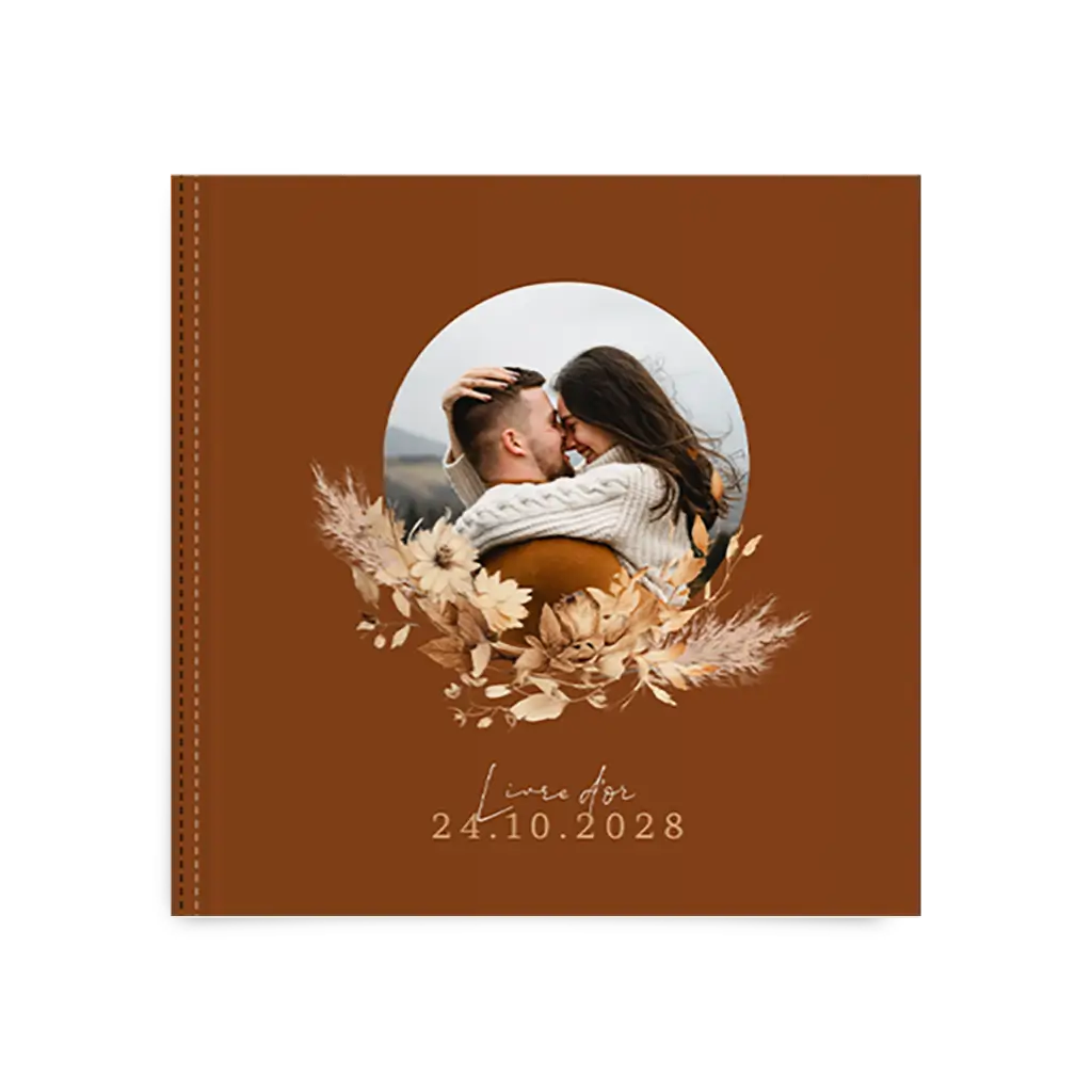 Livre d'or champêtre avec fleurs sèches et photo