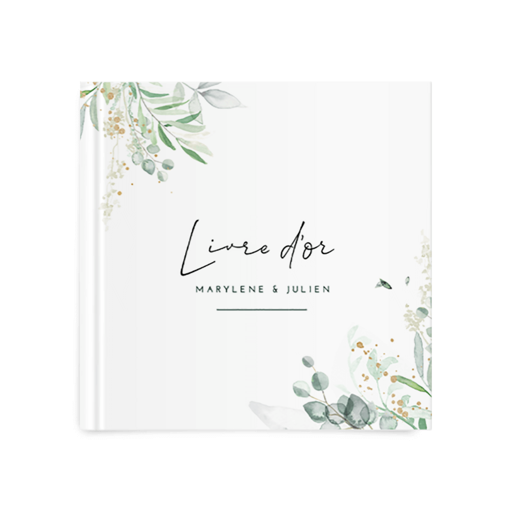 Livre d'or avec feuillages aquarelle et touches jaune doré