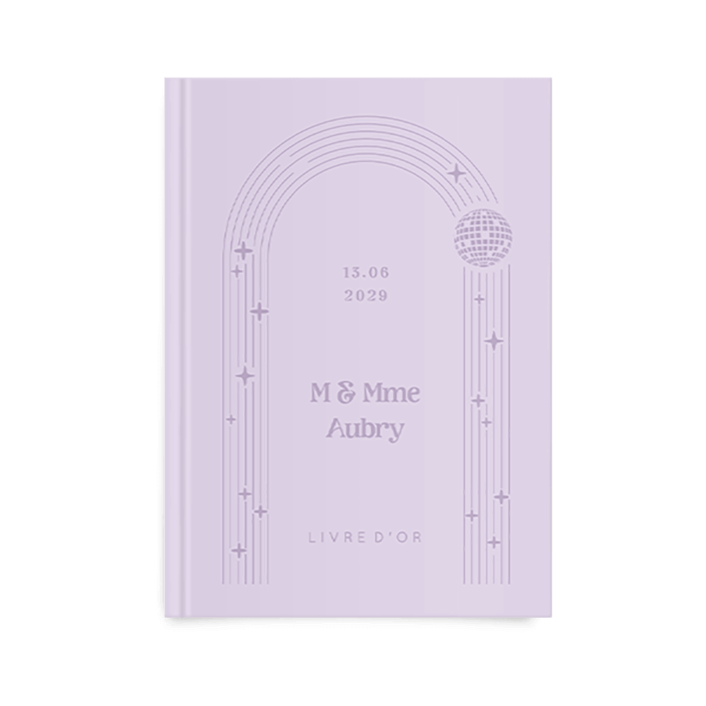 Livre d'or fond lilas avec étoiles et boule disco