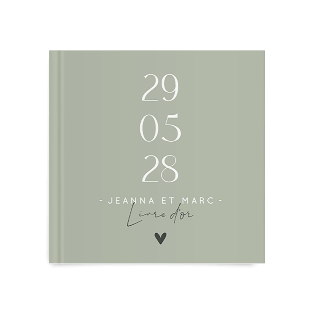Livre d'or fond vert, date du mariage et prénoms des mariés