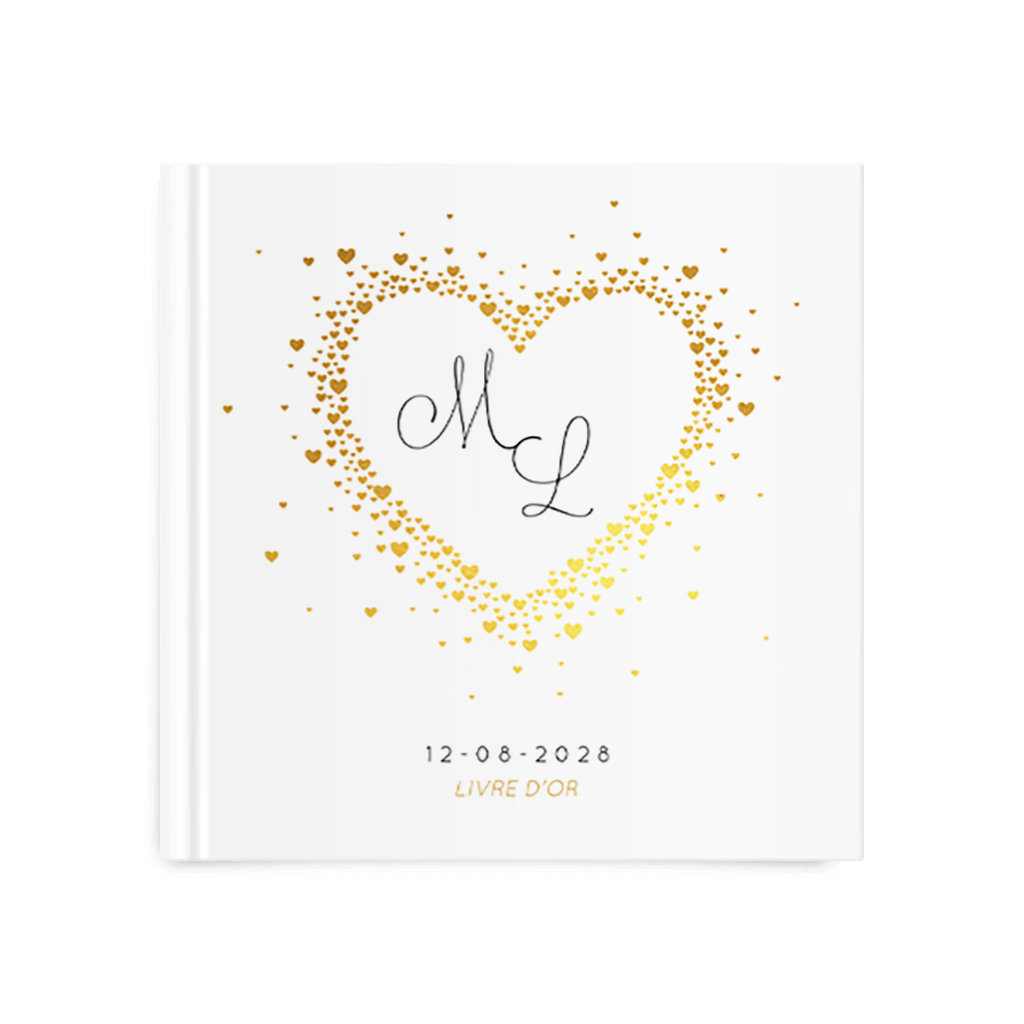 Livre d'or romantique avec petits cœurs d'or formant un grand cœur