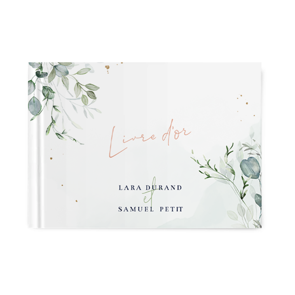 Livre d'or simple avec feuilles vertes