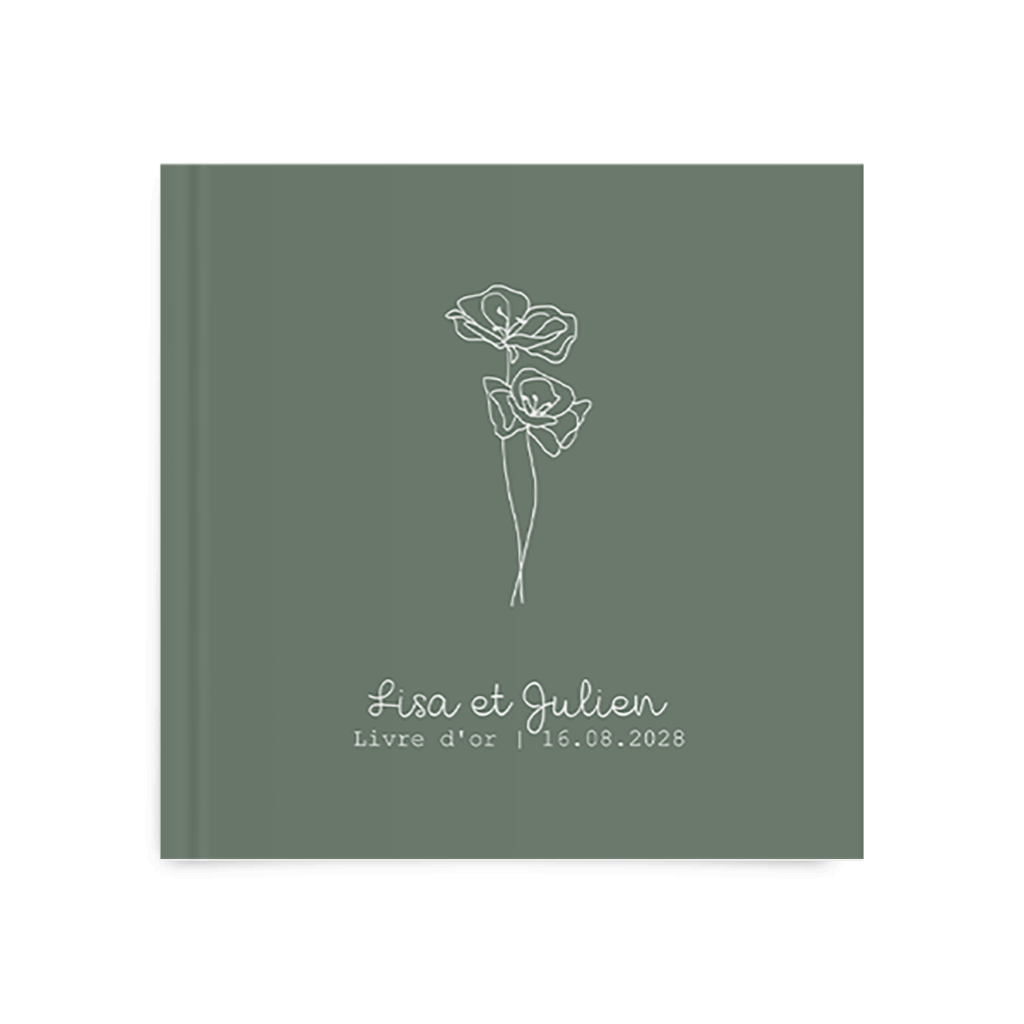 Livre d'or vert avec dessin romantique