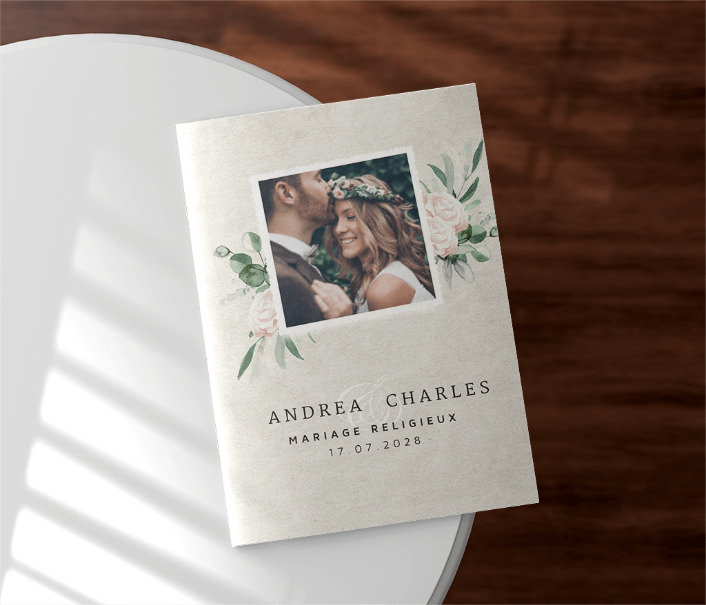 Livret de messe avec photo et fleurs roses