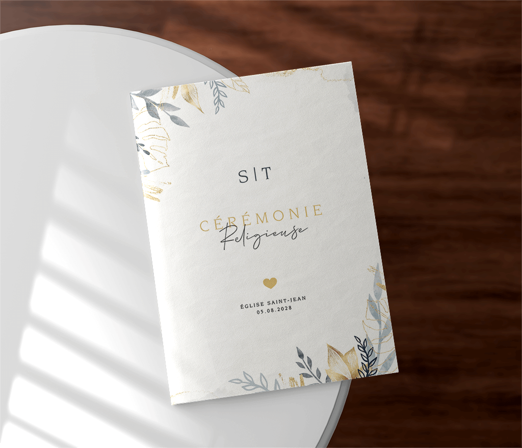 Ce livret de messe est relié par deux agrafes et peut être imprimé soit sur du papier mat (papier sans bois 170g/m²), soit sur du papier lisse légèrement brillant (satiné 170g/m²).