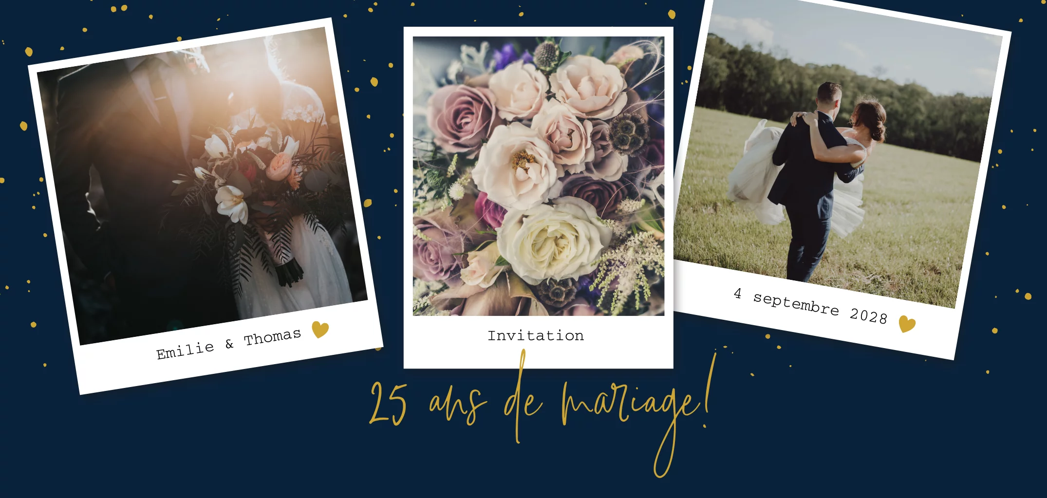 Invitation aux noces d'argent avec un fond bleu foncé et des photos