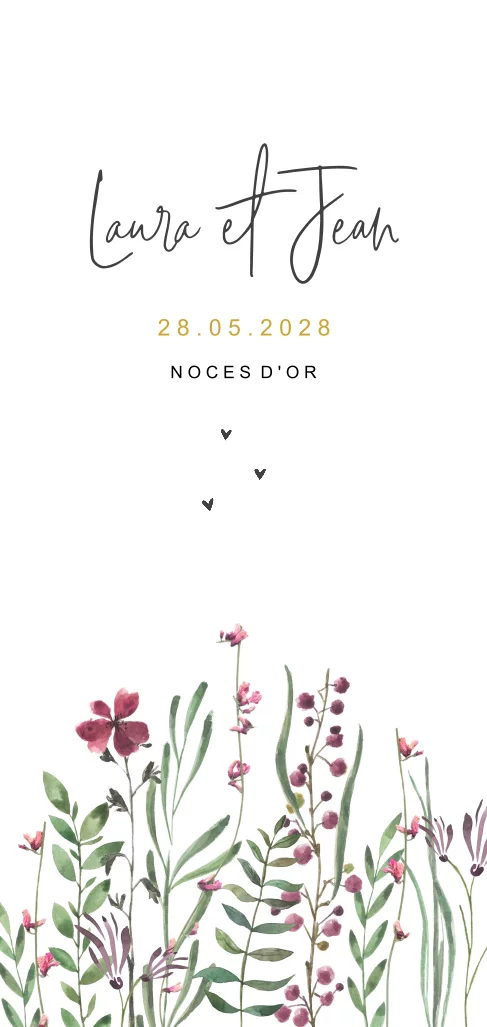 Invitation d'anniversaire de mariage avec des fleurs sauvages
