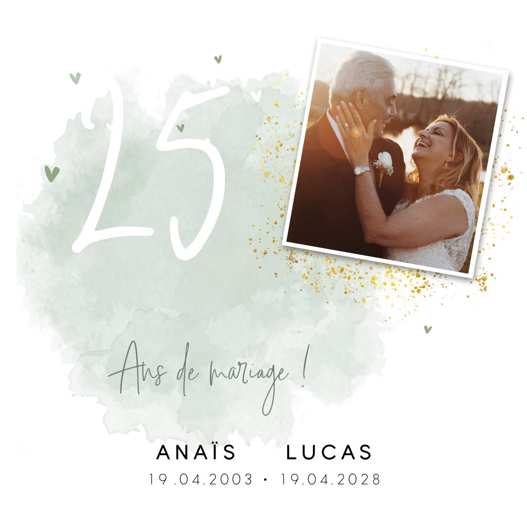 Carte d'invitation pour des noces d'argent avec des dorures.