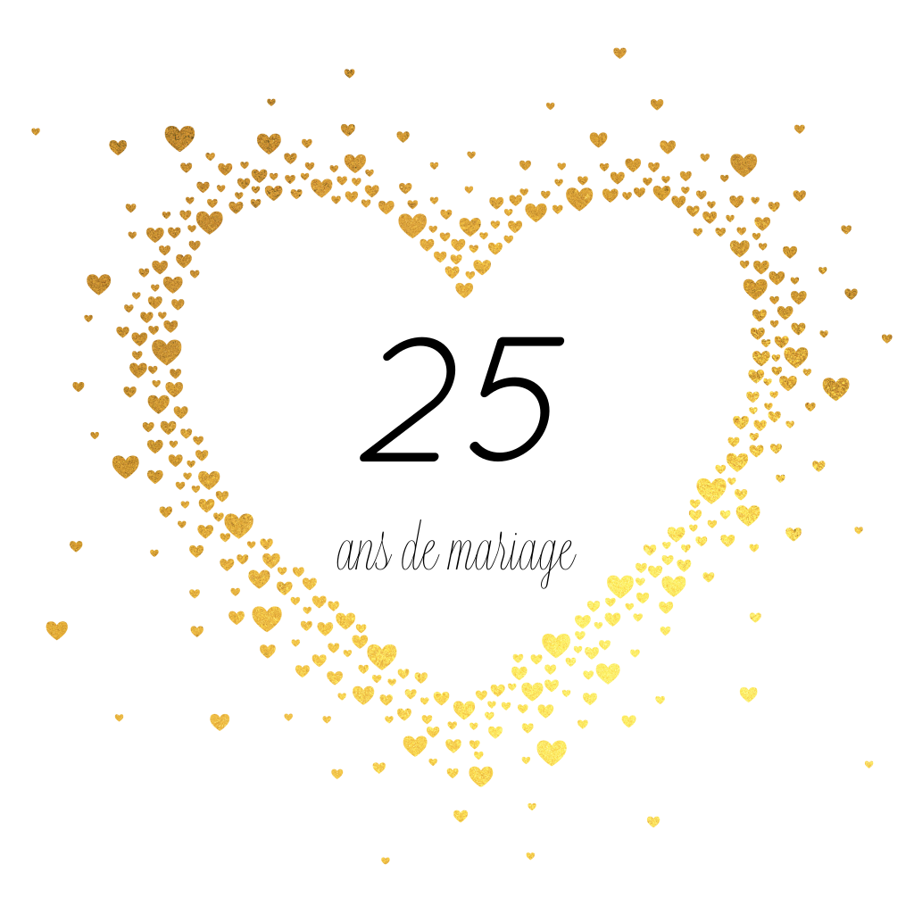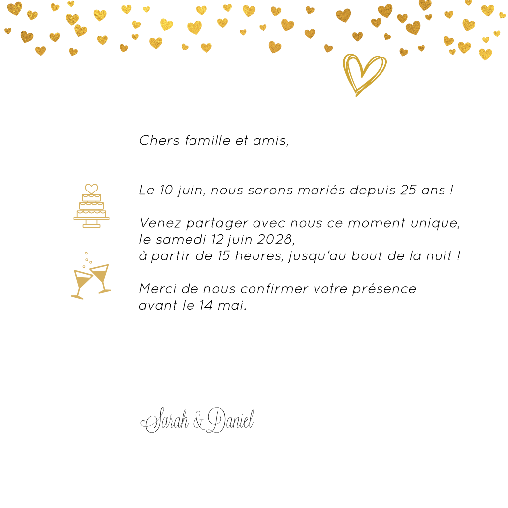 Invitation romantique pour noces d'argent avec cœurs dorés