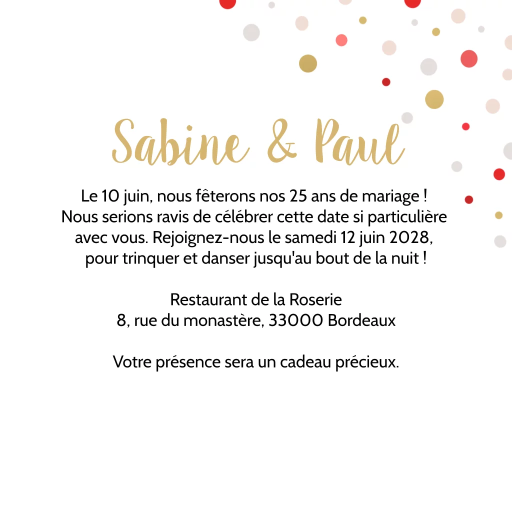 Invitation anniversaire mariage avec un van rouge et des confettis
